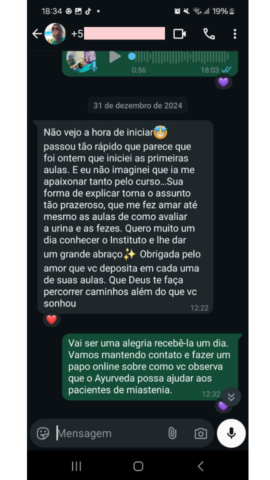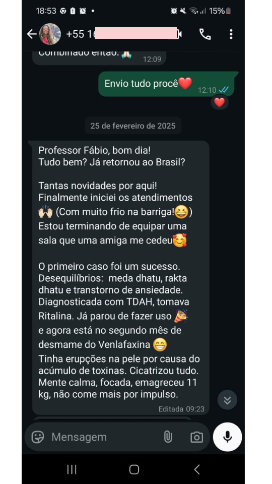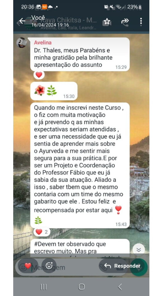 Fico muito feliz em saber que a nossa metodologia tem transformado a vida de tantas pessoas, permitindo que elas não apenas desenvolvam uma nova carreira, mas também conquistem mais equilíbrio, propósito e autonomia. Sei que muitas pessoas desejam um caminho profissional alinhado com o bem-estar e a conexão com a natureza, e o Ayurveda proporciona exatamente isso.